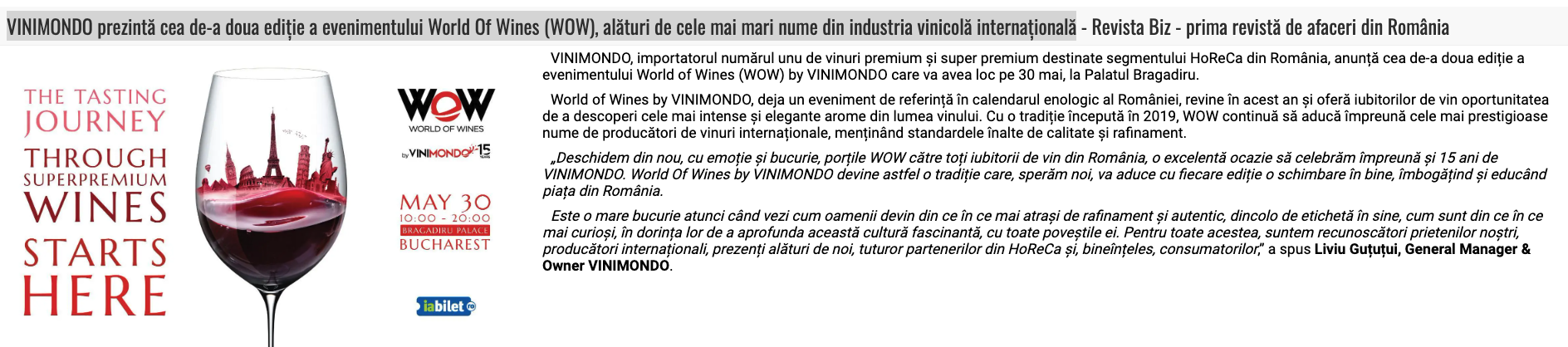 "VINIMONDO presents the second edition of the World Of Wines (WOW) event, alongside the biggest names in the international wine industry...."